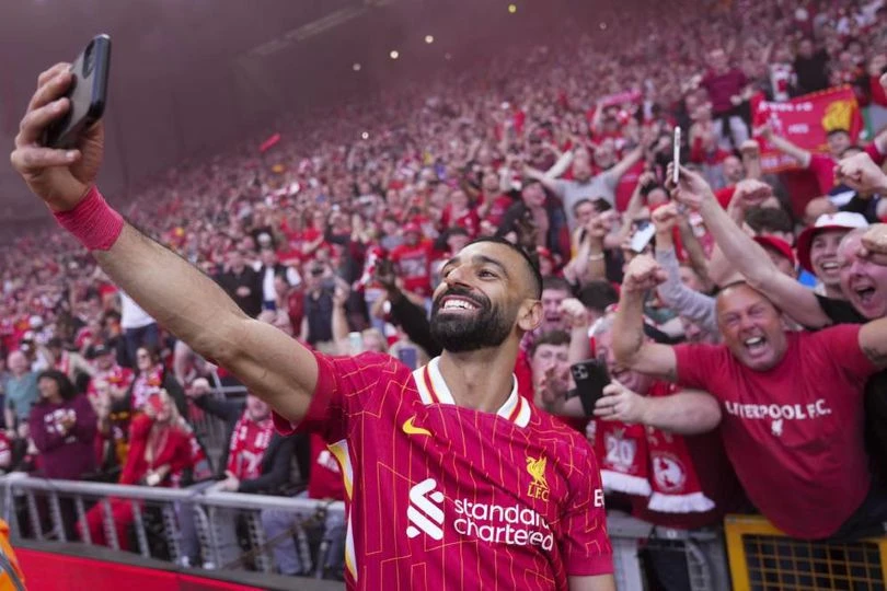 Mohamed Salah membagikan momen ikonik usai Liverpool memastikan gelar Liga Inggris 2024/25 lewat sebuah selfie bersama para fans.