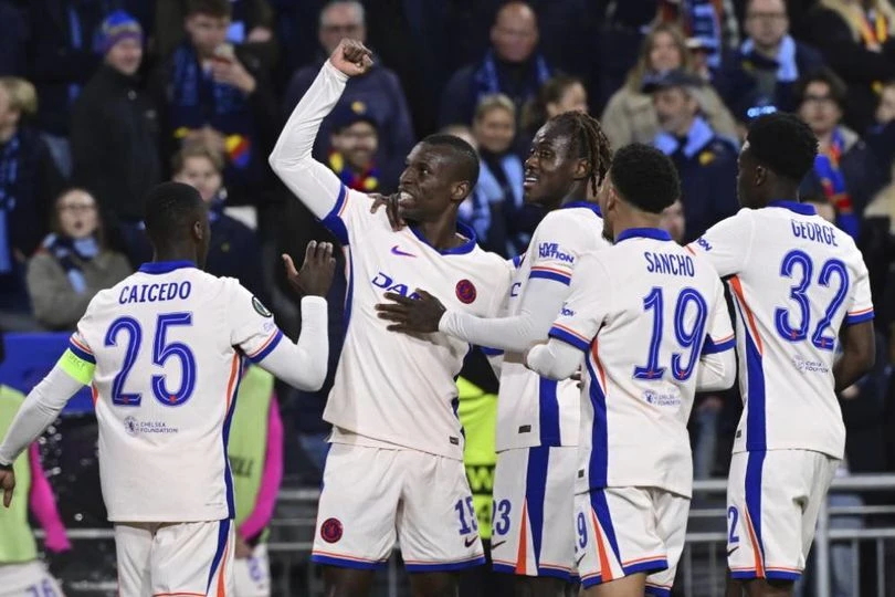 Bermain di kandang lawan, skuad asuhan Enzo Maresca langsung tancap gas. Mereka unggul 2-0 di babak pertama lewat gol Jadon Sancho dan Noni Madueke.